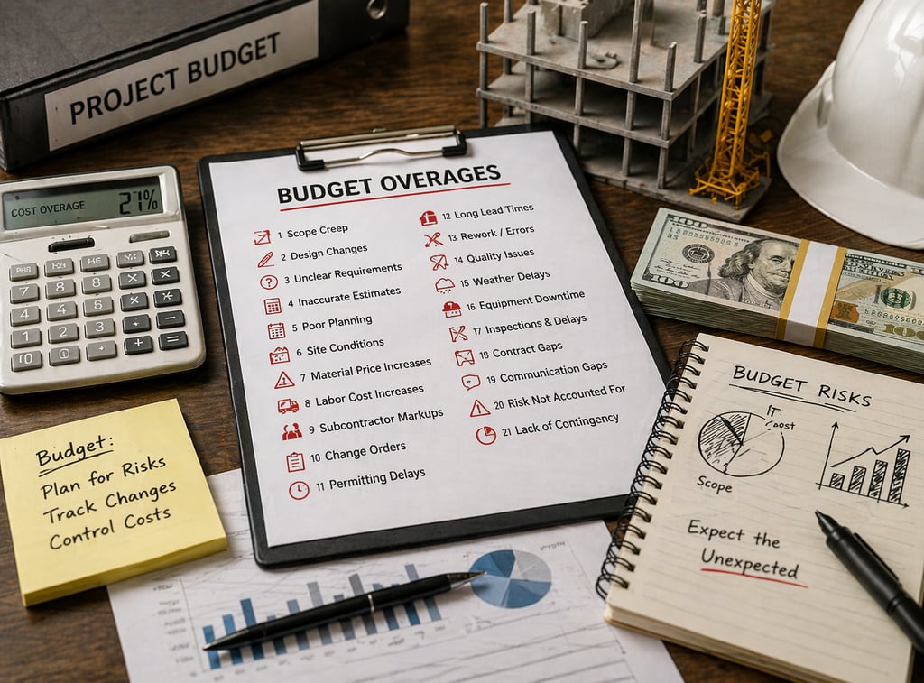 Learn 21 ways construction projects quietly go over budget—from scope gaps and contractor choices to delays and hidden fees. Get practical steps to control costs, avoid rework, and keep your project on track.